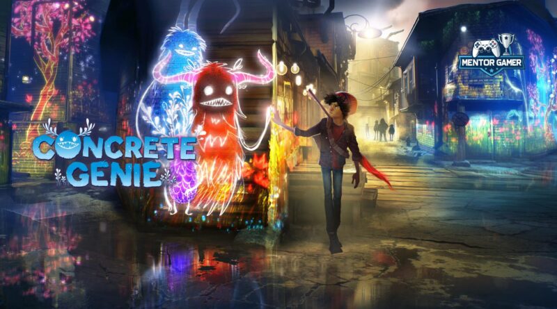 Concrete Genie mostra a emocionante jornada de Ash, um adolescente que sofria bullying e escapa de seus problemas dando vida à sua animada imaginação em seu caderno de desenhos, tudo isso enquanto explora Denska, sua terra natal que já foi uma cidade litorânea e agitada, mas que agora está poluída pela escuridão.